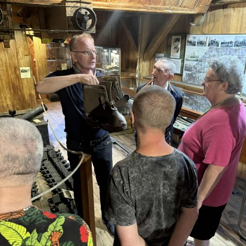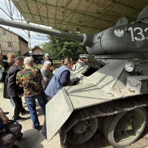 01 sierpnia 2025 r. grupa mieszkańców z naszych obu Domów wybrała się do Skansenu Rzeki Pilicy – jednego z unikalnych obiektów Tomaszowskiej Okrąglicy. Dzięki barwnym opowieściom przewodnika, p. Zbigniewa Cichawy, mieliśmy okazję poznać fascynującą historię eksponatów zgromadzonych w Skansenie – wielu z nich wydobytych z nurtów Pilicy. Oglądaliśmy m.in. czołgi, wozy pancerne, carską toaletę, makiety młynów, budynek dawnej stacji kolejowej i wiele innych niezwykłych obiektów. To miejsce z duszą – wpisane w historię Tomaszowa – w tym roku obchodzi swoje 25-lecie. Jesteśmy pewni, że jeszcze nie raz tam wrócimy. To był naprawdę dobrze spędzony czas!