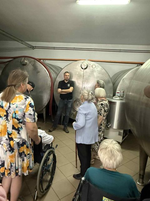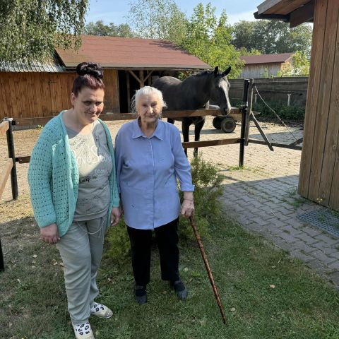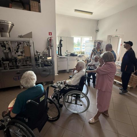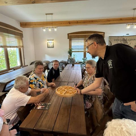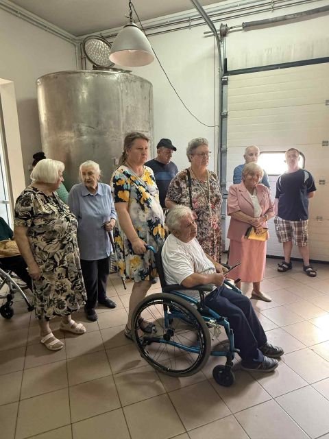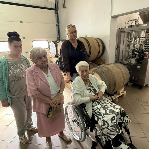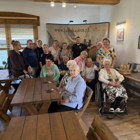 28 sierpnia 2025r. grupa mieszkańców z naszych obu Domów wybrała się do niezwykłego miejsca, jakim jest pobliska Pasieka „Jaros”. Panowie Marcin i Bartłomiej Jaros oprowadzili nas po terenie pasieki opowiadając o produkcji miodów pitnych, z których pasieka słynie, ale również mogliśmy usłyszeć i zobaczyć jak na miejscu jest tworzona ceramika, w której później sprzedawane są słodkie wyroby. Spotkanie zakończyła degustacja. Po wzniesieniu toastu i skosztowaniu miodu pitnego jednogłośnie wszyscy orzekli o jego wybitnym smaku. Mogliśmy również zaopatrzyć się w różnego rodzaju miody i wyroby ceramiczne. To było niezwykłe przedpołudnie, które pozwoliło spędzić mieszkańcom wspaniale czas, dowiedzieć się nowych rzeczy i zapisać się w pamięci na długi czas. Dziękujemy właścicielom pasieki „Jaros” za ciepłe przyjęcie.