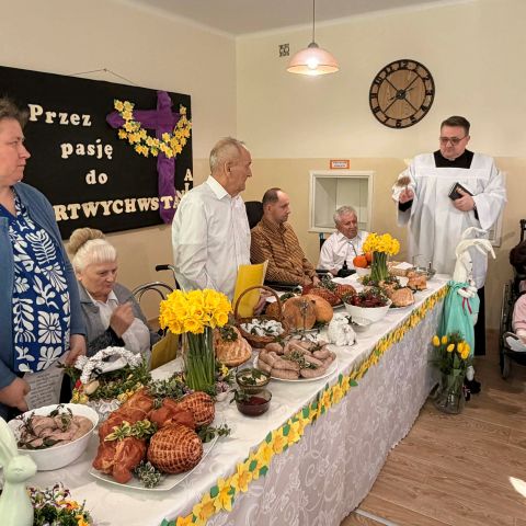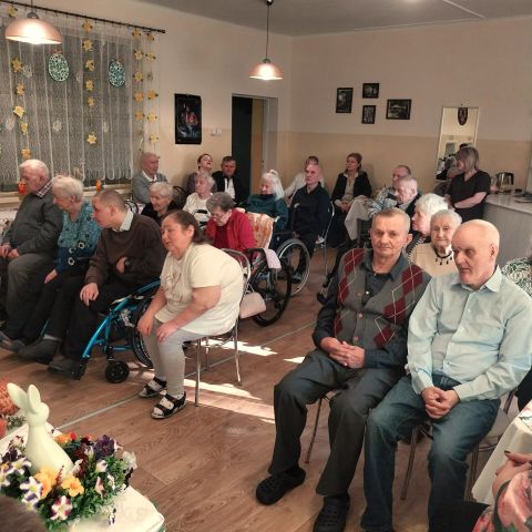 4 kwietnia 2026 r. w obu naszych Domach odbyło się tradycyjne święcenie pokarmów .🐣🌿 Następnie mieszkańcy zaprezentowali krótkie występy słowno-muzyczne, które wprowadziły wszystkich w prawdziwie świąteczny nastrój.🎶💛💛Było radośnie, ciepło i bardzo rodzinnie. Ta wyjątkowa atmosfera towarzyszyła nam przez całe Święta Wielkanocne. ✨🐰Dziękujemy wszystkim za wspólnie spędzony czas i zaangażowanie! 💐